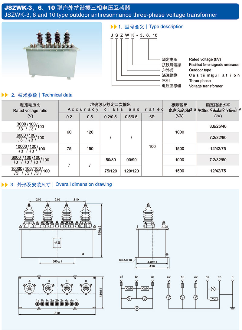 JSZWK-3、6、10型戶外抗諧振三相電壓互感器