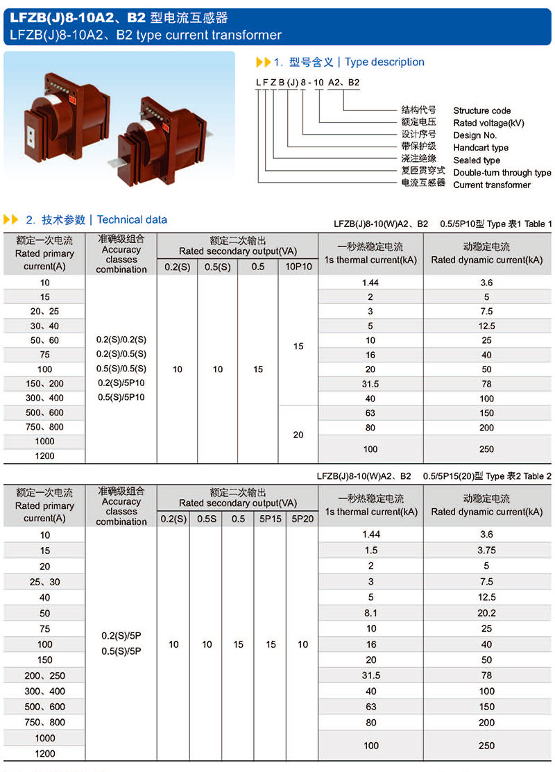 LFZB(J)8-10A2、B2 Type current transformer