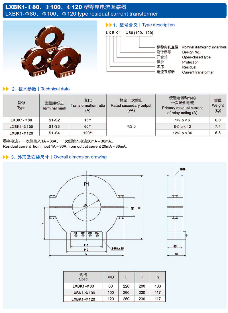LXBK1-Φ80、Φ100、Φ120 Type current transformer